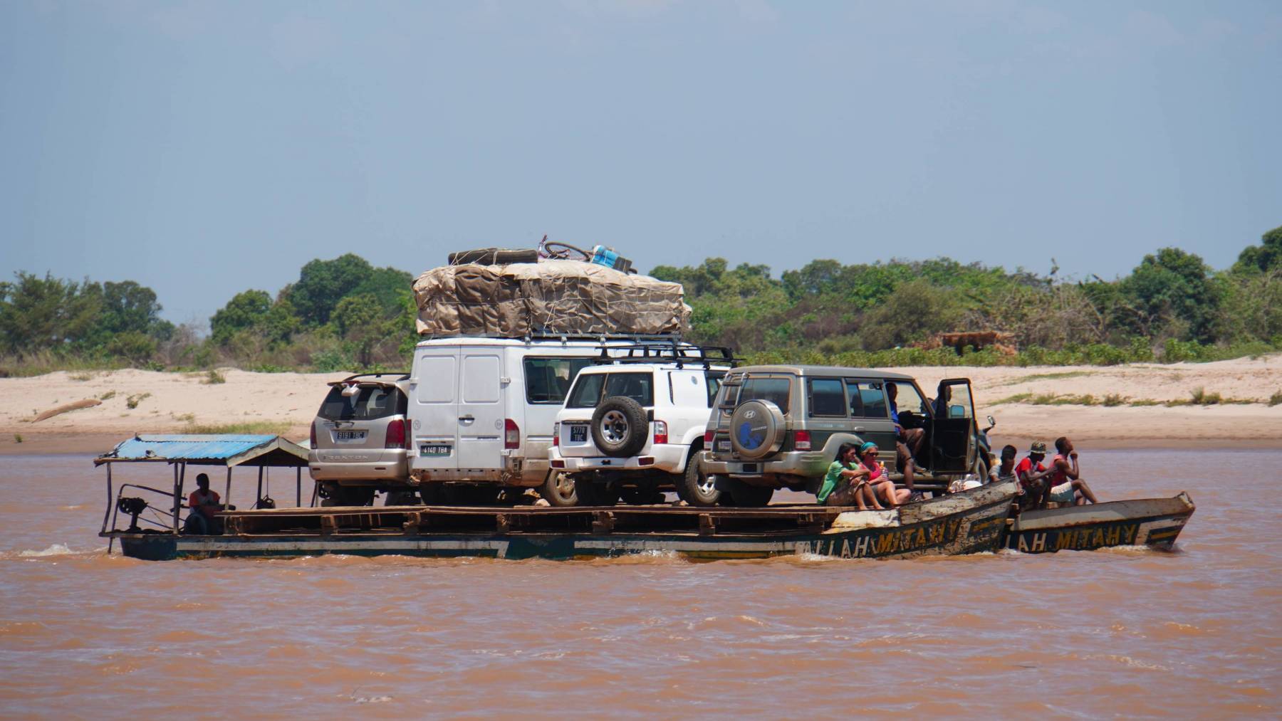 Shui wieder aufs Dach und los geht die Fahrt Richtung Morondava. Wir haben uns sehr viel zu erzählen und so vergehen die rumpelhaften Kilometer auf der staubigen Piste recht flott. Zwischendurch nehmen wir wieder die zwei Fähren in Anspruch.