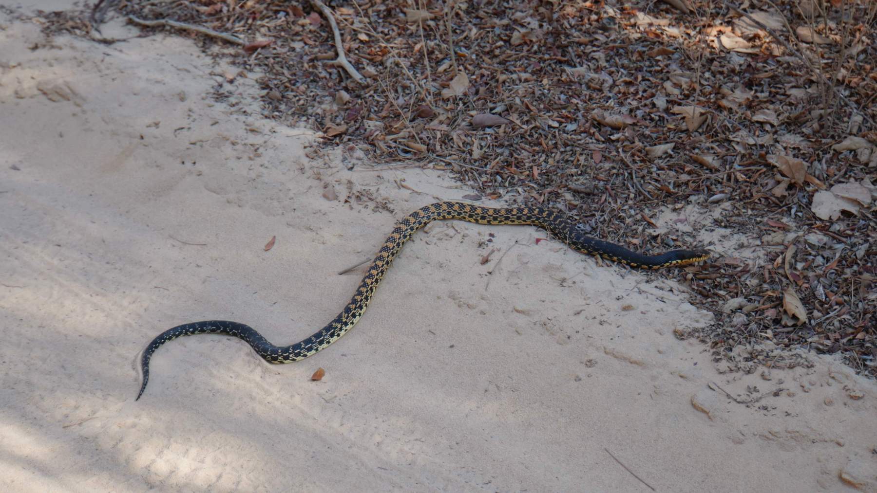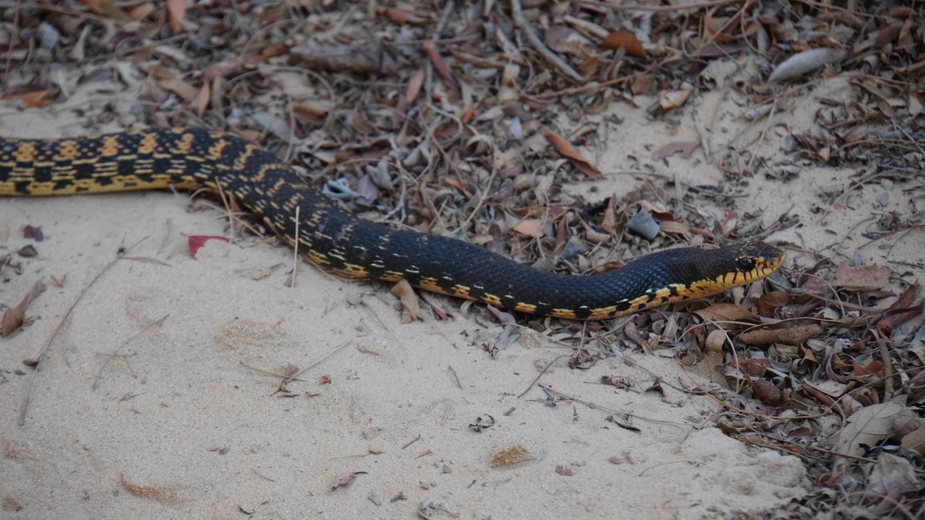 Kaum bin ich im Park angekommen, quert vor mir eine knapp 1,5 Meter lange Schlange die Sandpiste. Boah, ich bin überrascht. Von weiten dachte ich, es wäre ein langer Ast. Sobald ich an der Rezeption angekommen bin, schwirrten auch schon die ersten bunten Vögel in allen Größen umher.