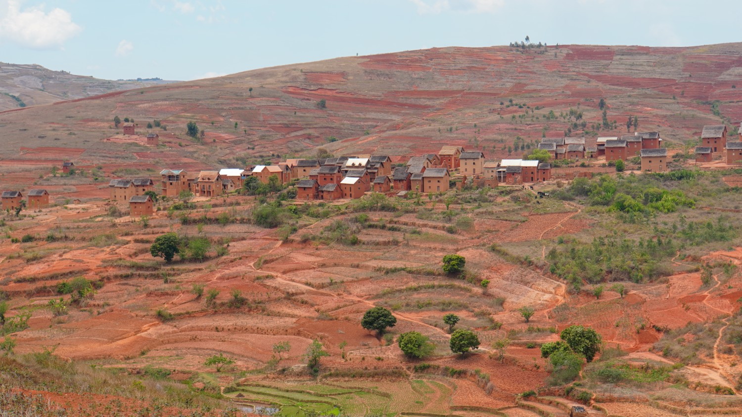 Am nächsten Tag also, fuhr ich dann schließlich in Richtung Antsirabe. Mal wieder durch eine sehr abwechslungsreiche Landschaft. Eigentlich komplett anders als die Tage zuvor. Große Ziegelhäuser, viele Dörfer, viel Leben, vieles unterschiedliches wird angebaut: Reis, Kartoffeln, Mais, Karotten, Paprika, Maniok, etc…