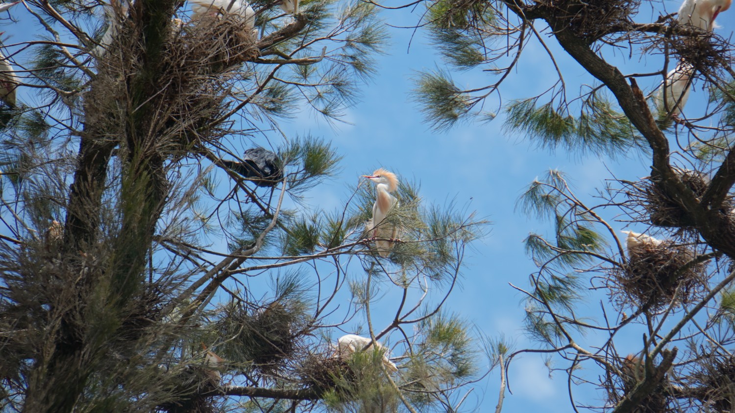 Wo bin ich denn da hingekommen?!, fragte ich mich. Nach dem Anmeldeprozedere quartierte ich mich im Mehrbettzimmer ein. Freie Bettenwahl, ich nächtige alleine in dem großen Raum. Gleich danach bin ich wieder hinaus: Vogelbeobachtung deluxe! Es gab sooo viele zu beobachten, direkt vor der Tür.