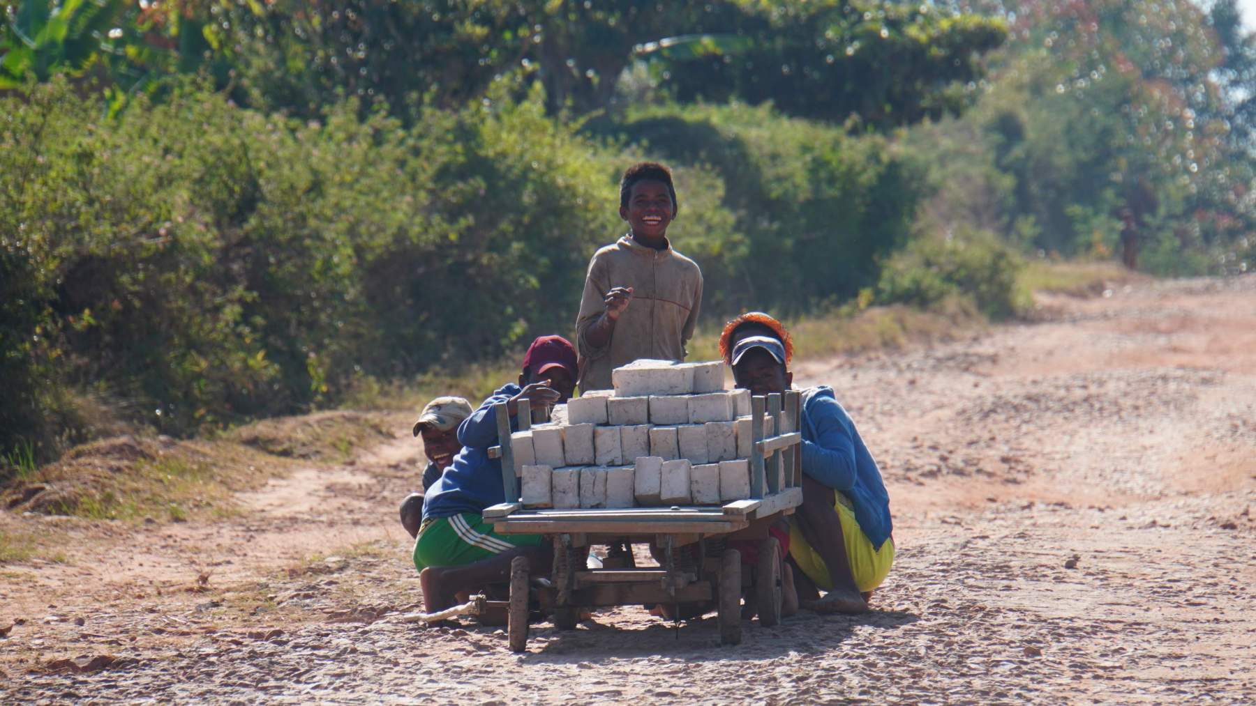 Nach zwei Tagen erreiche ich Antsirabe, die Stadt wo auch das supergute Bier „THB – Three Horse Beer“ gebraut und abgefüllt wird. Selbstverständlich gab es einiges unterwegs zum Erleben und Staunen, dies habe ich versucht mittels Fotos zu dokumentieren. Was auch noch wert ist zu erwähnen sind all die „Salut Vazaha“ (Hallo Weißer)-Rufe, die sich wie ein Buschfeuer durch ein Dorf verbreiten. Neben dieser zum Teil anstrengenden Freude, gab es auch zu sehen wie Menschen große Steine zu immer kleineren hämmerten, echt krass! Auch bemitleidend: all die Tiere, zu meist Zebu-Kühe, die ausgepeitscht oder geschlagen werden, um die Idee des Menschen umzusetzen. Jedes Tierchen in den Händen der Menschen tat mir leid.