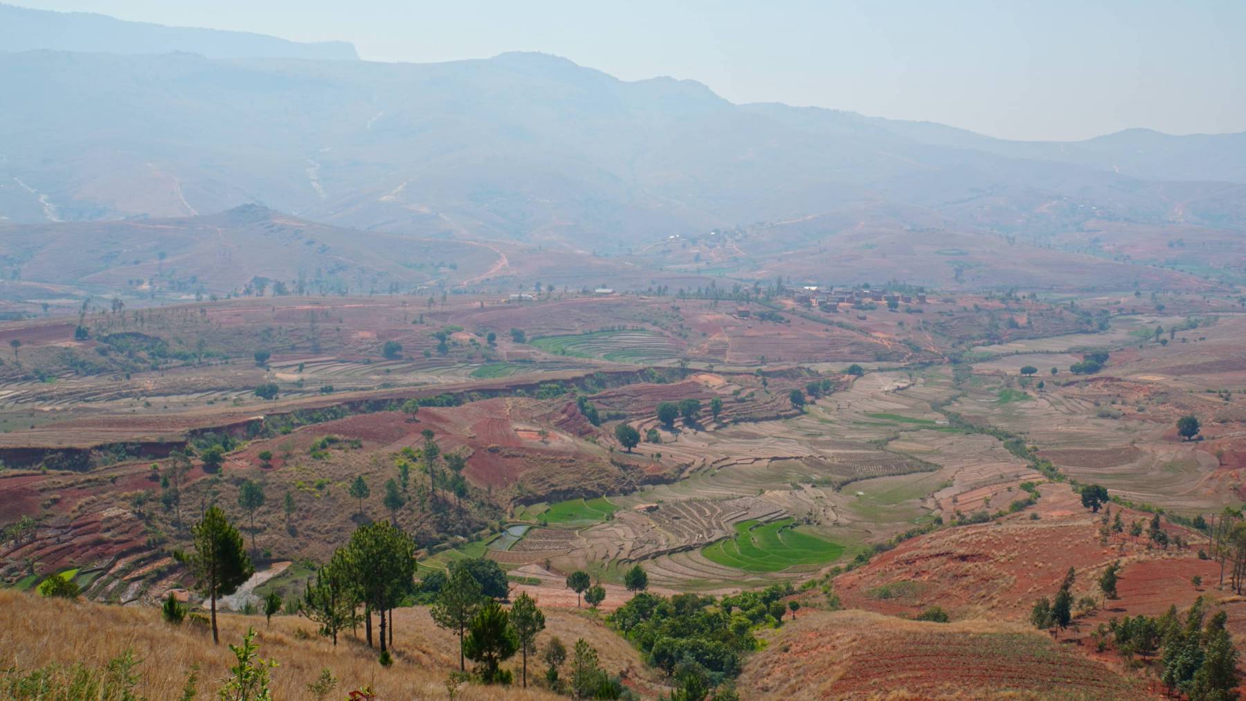 Kilometer um Kilometer, die Landschaft verändert sich. Aus Wald werden Plantagen. Enorme Anbaugebiete. Dies verleiht der hügeligen Landschaft viele Farben und der Bevölkerung seeeehr viel Nahrung. Ich bin gut müde nach den vielen Höhenmetern.