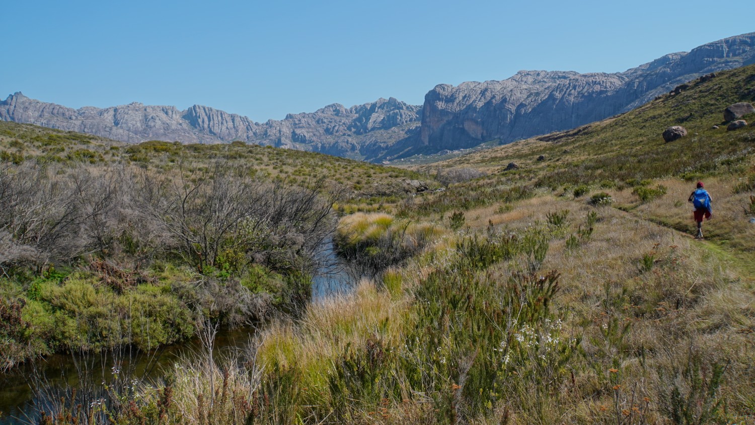 Weiter radelte ich zuerst ein Stück zurück und weiter dann nach Fianarantsoa und Tag später vorbei an mehreren Weinanbaugebieten nach Ambalvao. Dort fuhr ich zuerst in das „Andringitra Nationalpark“-Büro und erkundigte mich zwecks einer Wanderung zum 2.höchsten Berg aber höchsten besteigbaren Gipfel mit 2658 Metern, „Imarivolanitra“ (Übersetzt: „Weg zum Himmel“). Unbenannt von „Pic Bobby“. Die Engländer benannten den Gipfel nach dem Erstbesteiger: ein Hund namens „Bobby“.
