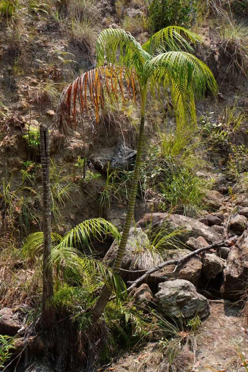 Ca. vier Stunden später erreichen wir das Ticket-Büro. Ich packe meinen Rucksack, stelle Shui ab, kaufe das Ticket, bekomme Guide „Justin“ zugeteilt und los gehts. Wir marschieren 14 km, legen einen Stop an einem flachen Wasserfall zum Baden und Rasten ein und erreichen schließlich das Basislager auf 2082m, wo ich mein Zelt aufstelle. Die Landschaft ist soooo viel anders als sonst wo bisher auf der Insel. Gefällt mir richtig gut und dann noch die hohen Berge, Insekten, Chamäleons und Vögel!! Der Himmel in der Nacht so klar, die Luft schön kühl, herrlich zum Schlafen.