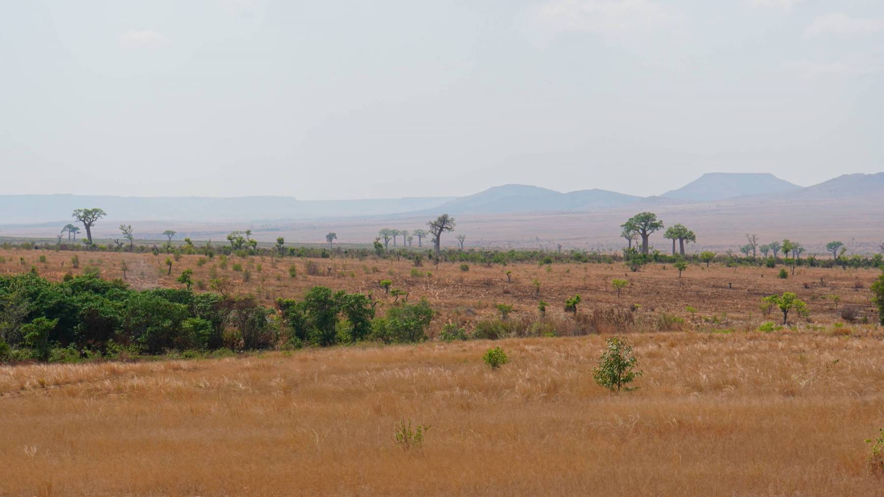 In Antisarbe blieb ich vorerst für eine Nacht und fuhr von hier aus weiter Richtung Westen. Ein völlig neues Madagaskar entpuppt sich Kilometer um Kilometer. Wo es sich anfangs noch saftig grün und voller Felder zeigte, folgte bald die Hitze und somit Dürre. Bis auf vereinzelte Oasen und durch angelegte Kanäle, die mit der grünen Farbe herausstrahlen, ist alles trocken-goldig-gelb. Auch schön und sehenswert, wäre da nicht die brutale Hitze, wenn der Fahrtwind mal ausbleibt, weil es knackig bergauf geht.