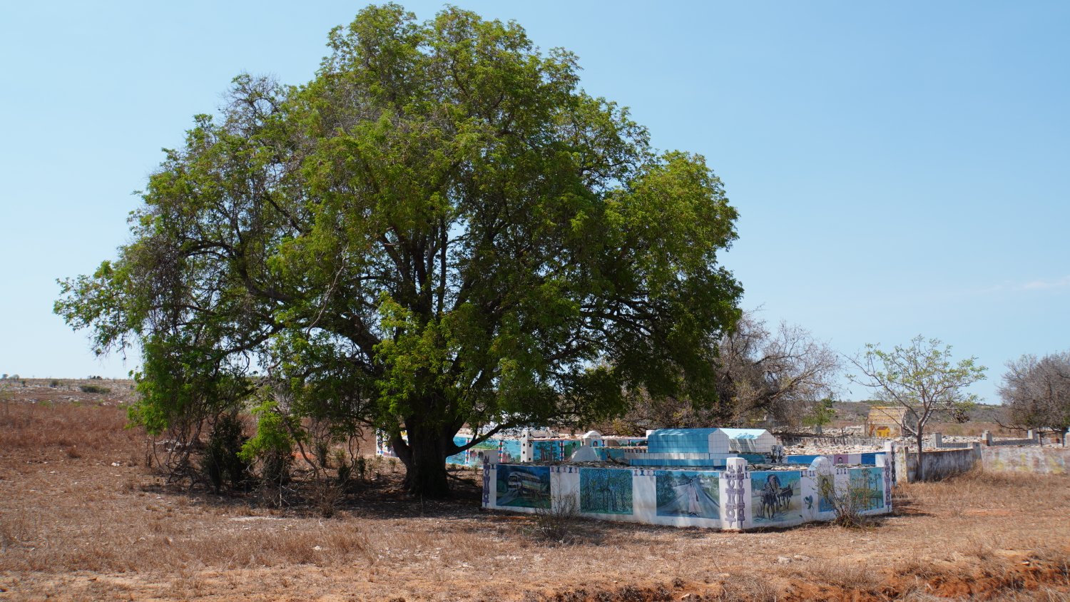Ab hier wird es wieder trockener. Auch weniger Dörfer am Weg (=weniger Wasser unterwegs=Mehr Wasser mitnehmen). Dafür mehr riesige Felsen, fast schon Berge, die in der Landschaft herausragen. Dennoch, Schatten gibt es eigentlich nie. Wie auch die ganzen zwei Monate lang nicht auf der Straße.