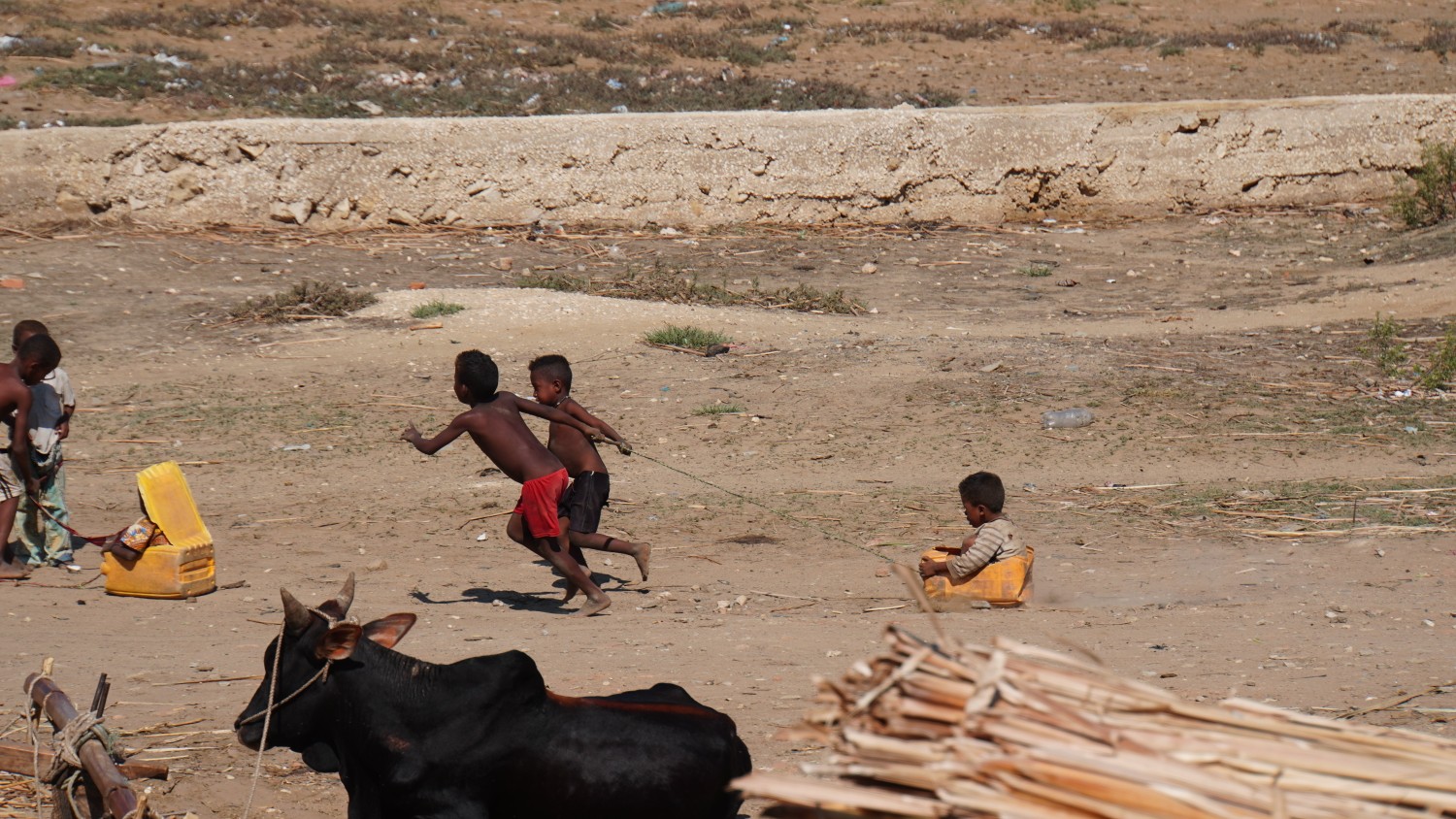 Frauen waschen Kleidung an den Flüssen oder in den Reisfeldern. Männer hingegen die Autos/Fahrräder/Rickschas. Kinder spielen zum Teil mit selbstgebauten Spielzeug aus zB. Holzstecker, Nagel und zwei Kapseln oder Fußball mit einem „Ball“ aus zusammengeknüllten Pladtiksäckchen und diese fest zugeschnürt. Links und rechts lodern die aufgetürmten Ziegelbauwerke zum Ausbrennen und wo einst Bäume standen brennen jetzt kleine Kohlenmeiler um die Kohle zu verkaufen oder selber zu nützen.