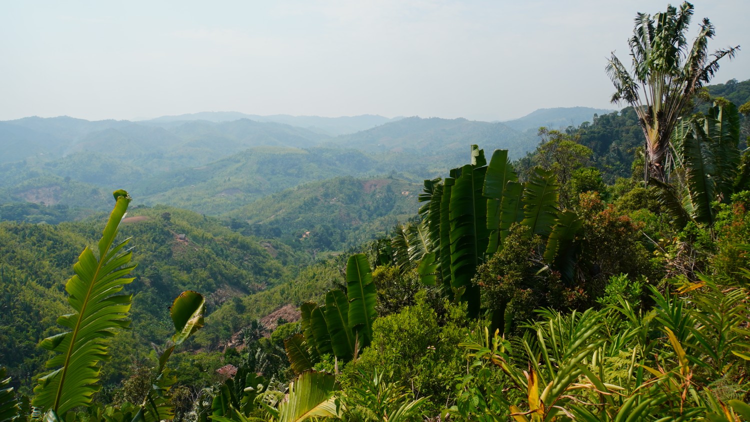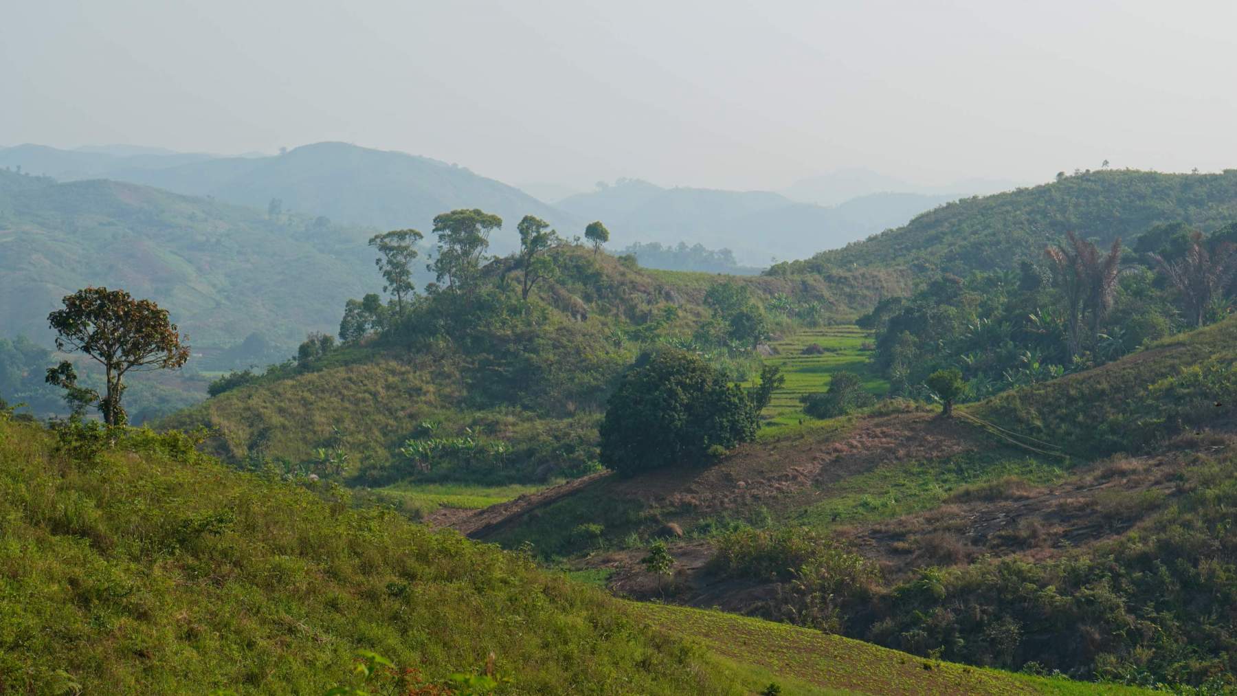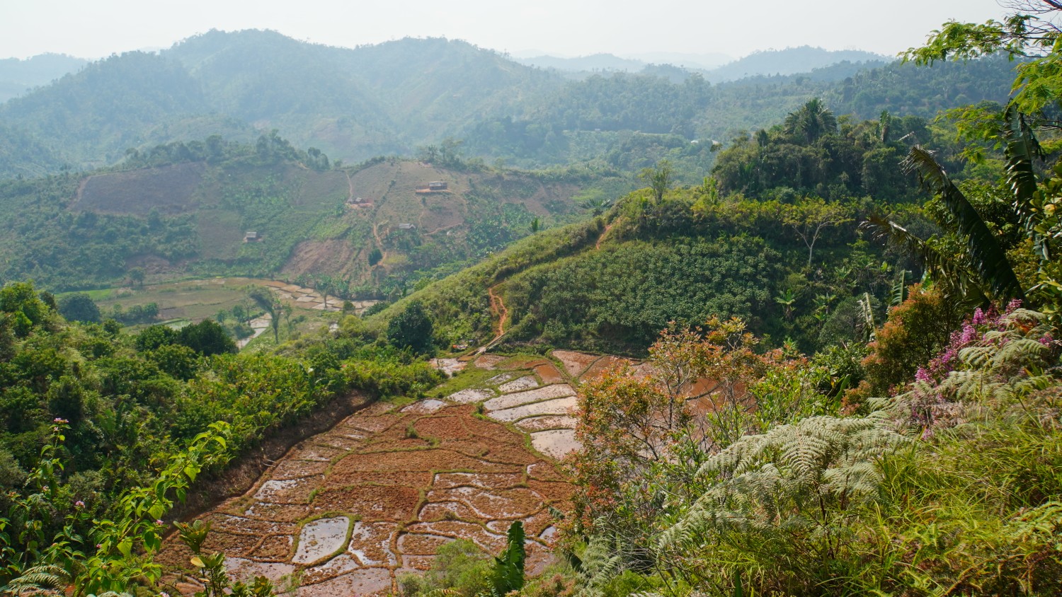 Kilometer um Kilometer, die Landschaft verändert sich. Aus Wald werden Plantagen. Enorme Anbaugebiete. Dies verleiht der hügeligen Landschaft viele Farben und der Bevölkerung seeeehr viel Nahrung. Ich bin gut müde nach den vielen Höhenmetern.