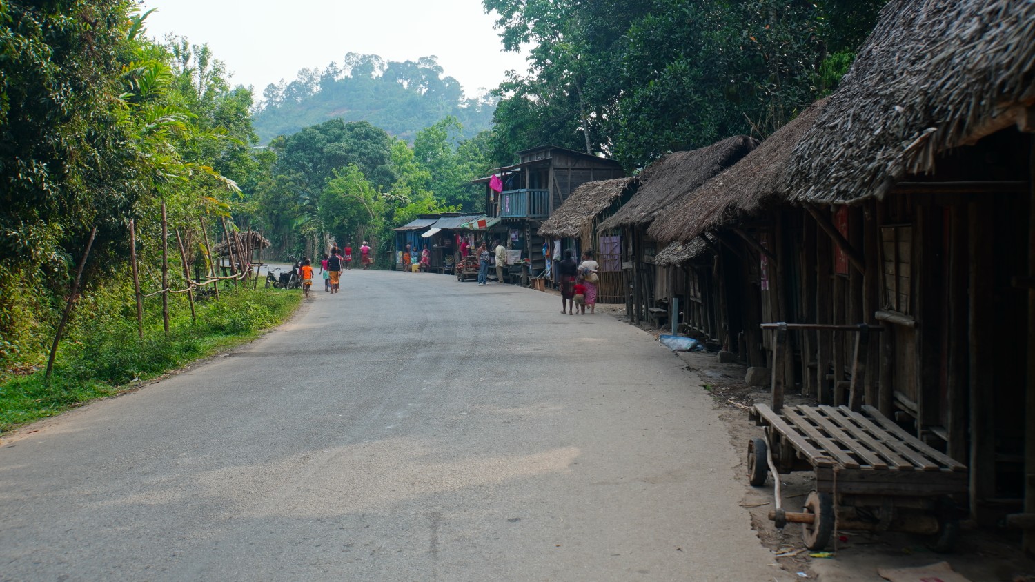 Frauen waschen Kleidung an den Flüssen oder in den Reisfeldern. Männer hingegen die Autos/Fahrräder/Rickschas. Kinder spielen zum Teil mit selbstgebauten Spielzeug aus zB. Holzstecker, Nagel und zwei Kapseln oder Fußball mit einem „Ball“ aus zusammengeknüllten Pladtiksäckchen und diese fest zugeschnürt. Links und rechts lodern die aufgetürmten Ziegelbauwerke zum Ausbrennen und wo einst Bäume standen brennen jetzt kleine Kohlenmeiler um die Kohle zu verkaufen oder selber zu nützen.
